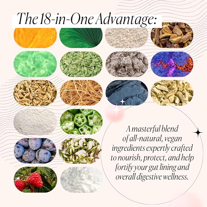 - SUPPORTS DIGESTIVE COMFORT Gentle botanicals including aloe vera, marshmallow root & slippery elm support gut tissue, comfortable digestion and digestive wellness. Polyphenol-rich pomegranate extract & lemon balm support digestive comfort by providing bloating, gas and indigestion relief. L-glutamine powder with MSM are natural ingredients that supports gut and digestive wellness in every serving.