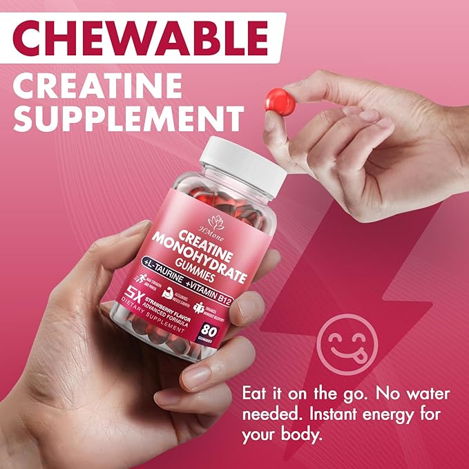 - Energy Boost & Enhanced Muscle Performance - HMone Premium Creatine Monohydrate Creapure Gummies unlock great performance. Each serving has 5g of creatine monohydrate Creapure and is trusted worldwide. Our products, carefully made for workout enhancement, suit all. They boost muscle strength, performance, endurance and overall fitness, with a tasty natural Strawberry flavor.