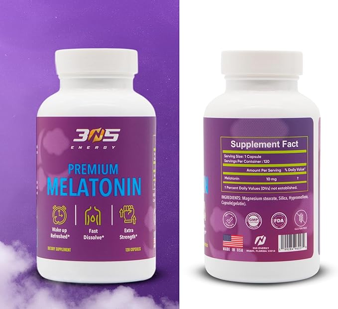 Melatonin 10mg Extra Strength – Fast Dissolve Capsules for Adults – Natural Sleep Aid & Jet Lag Support – Gluten-Free, Non-GMO, Made in USA – 120 Count