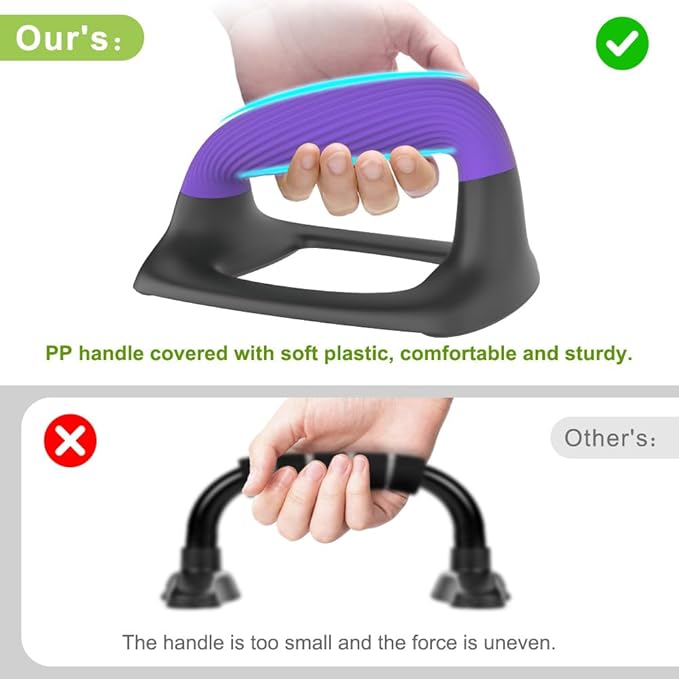 - Wide Push-Up Grip for Comfort: Each push up handle is 1.6 inches wide and ergonomically shaped to fit your palm. The soft plastic push-up handles provide a secure, non-slip grip, minimizing hand fatigue and maximizing comfort during pushups and push-up bar workouts