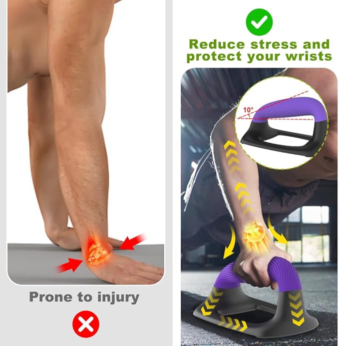 - Ergonomic Push-Up Handles for Wrist Relief: Lifeswell push-up bars feature a scientifically designed slight angle that aligns with your wrist’s natural position, reducing joint strain during workouts. These floor push-up handles are ideal for strength training, helping you perform deeper, safer, and more effective push-ups