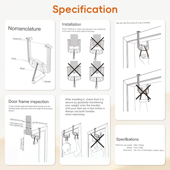 - [Product Advantages] Our strength training pull-up bars are made of PP+PA material to ensure the durability of the product, the maximum load bearing 330 lists, at the same time, the ergonomic design of pull up bar, the product and the door frame of the slot between the design of the wider and thicker, to allow people to grip a strong grip, the use of a safer and more secure!