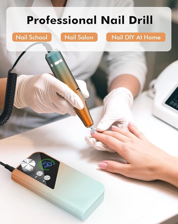 - User-friendly Design: The large HD LCD screen displays battery level, speed, and rotation direction, making it easy to monitor and customize settings. The compact design and ergonomic handle ensure comfortable grip and control while working on nails
