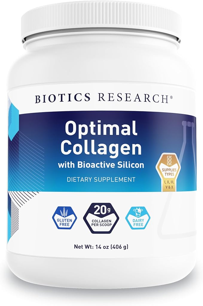 Biotics Research Optimal Collagen Easy-to-Mix Broad-Spectrum Collagen + Bioactive Silicon, Collagen Types I, II, III, V & X, 20 Grams Collagen per Serving