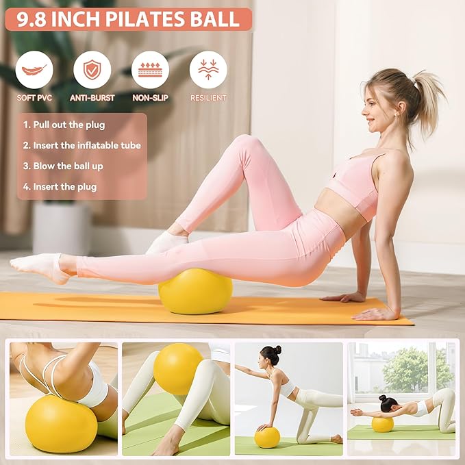 • ✅ALL-IN-ONE PILATES KIT FOR FULL-BODY WORKOUT: 12 pcs starter set contains pilates ring, resistance bands with guide, anti-burst mini ball, massage lacrosse and yoga strap. Perfect home fitness gift from toning, stretching, core strengthening to post-workout fascia relaxation