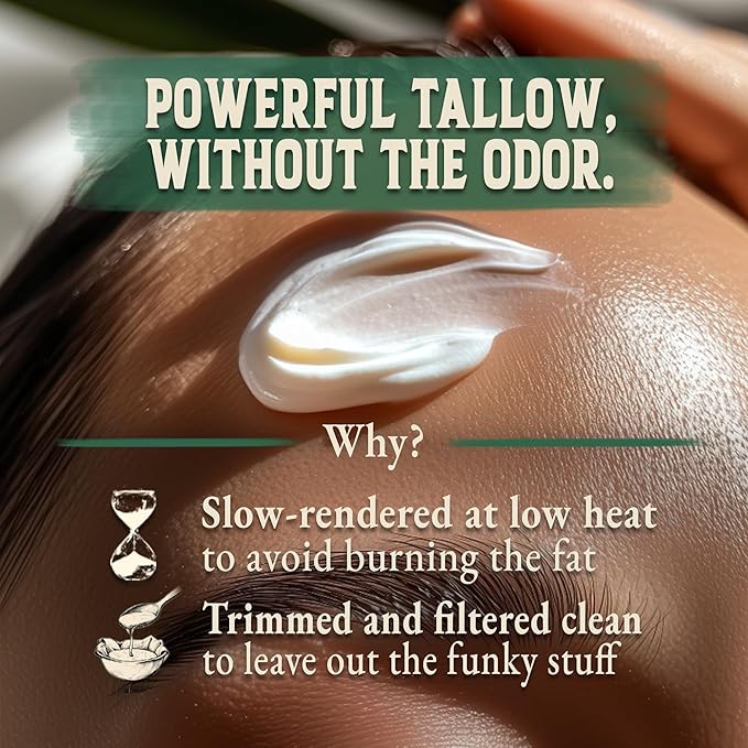 - ๐ฐ๏ธ TIME-HONORED SKINCARE RITUAL: Crafted with traditional slow-rendering methods, this grass fed beef tallow balm brings the same soothing, restorative care that generations have trusted, now refined into a premium, modern formula. Pure, clean, and naturalโjust the way skincare was meant to be