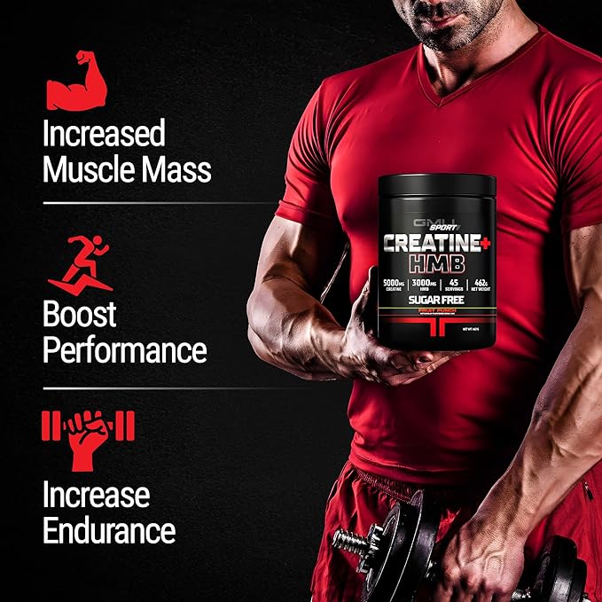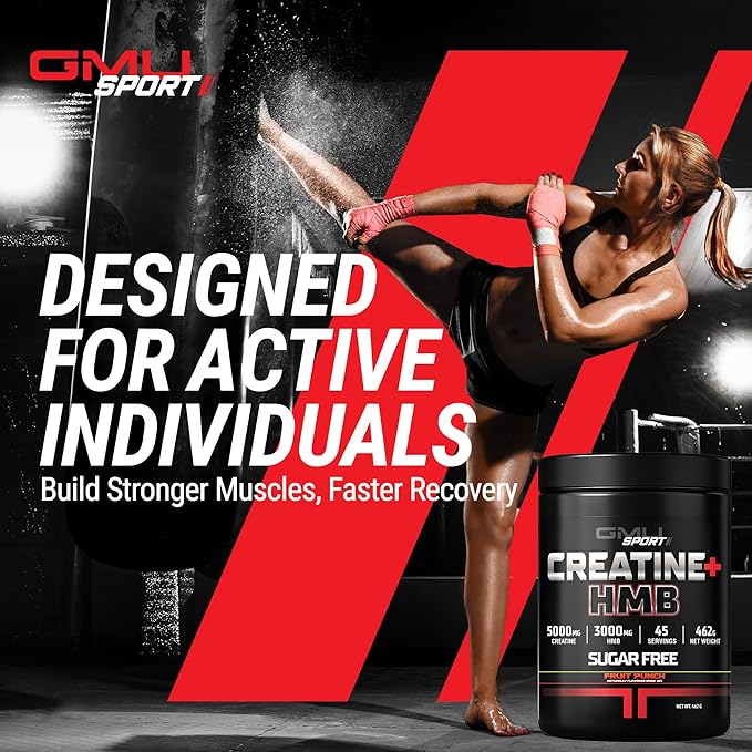 GMU SPORT - Creatine Monohydrate with HMB Powder - 45 Servings, Creatine HMB Supplements, Creatine with HMB for Increased Strength, Muscle Growth & Enhanced Energy, 3G HMB/Fruit Punch