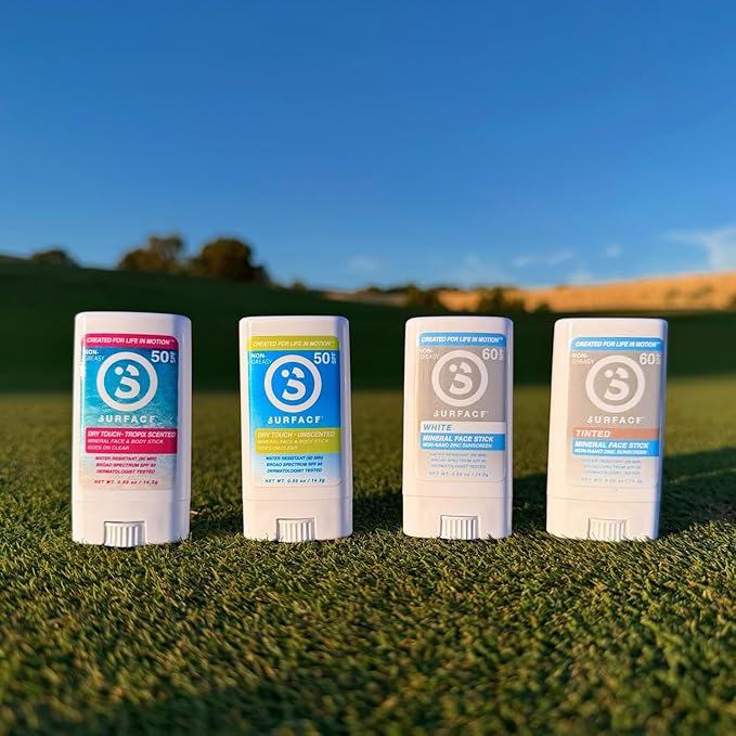 Surface Mineral Face Sunscreen Stick, Dry Touch SPF 50, Broad Spectrum UVA UVB Sun Protection for Kids and Adults, Travel Friendly, Water Resistant for 80 Minutes, Fragrance Free, 0.5oz