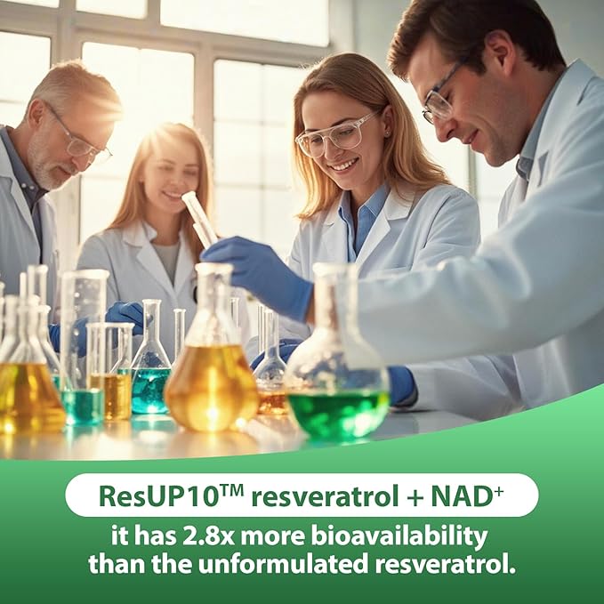 500mg Liposomal NAD+ Supplement, 800mg ResUP10 Resveratrol Complex, Support Aging Health & Cellular Energy, Cardiovascular Supplements,Antioxidant Formula for Men & Women, 30 Servings