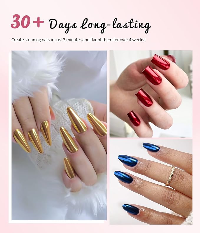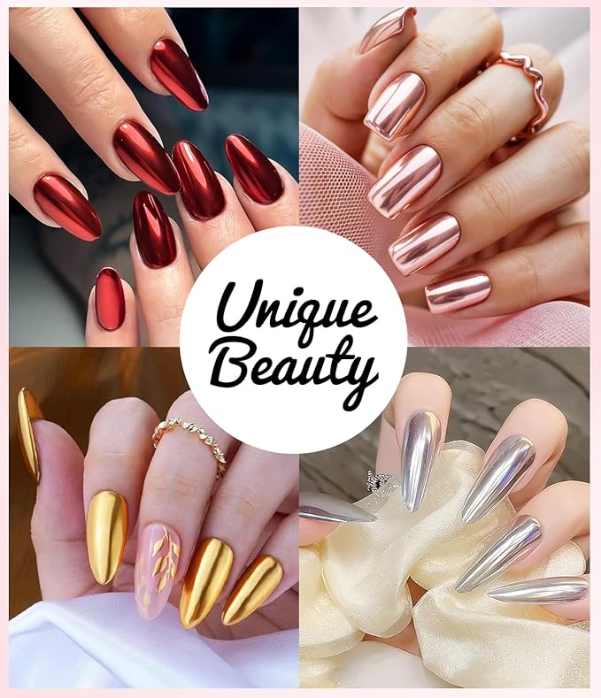 - 24K Hyper-Mirror Finish: We honored to say that our latest research and development results of gold chrome powder are 35μm deliver a true 24K gold reflection without oxidation – 97% higher reflectivity than standard gold nail chrome dust in third-party tests. No more dull, bronze-like tarnish!