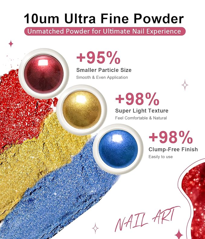 - Christmas Idea Gift: Green red chrome nail powder will be great ideal for Coachella , Christmas, Halloween, birthday, winter nail art and many other occasions. And Christmas ice blue chrome nail powder will be a perfect gift for anyone who are nail art & manicure lovers, from beginners to nail technicians and nail salon owners.