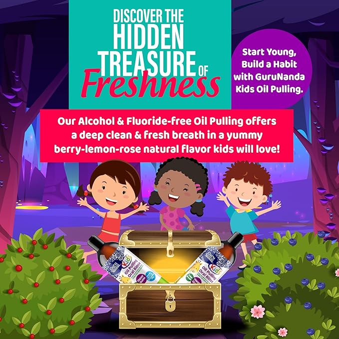 - BRIGHT SMILES AHEAD!: Hey Parents! Make oral care fun and effective with the GuruNanda Kids Oral Care Regimen. Featuring our berry-flavored fluoride-free toothpaste, gentle kids water flosser, and kid-friendly oil pulling mouthwash, this complete bundle helps keep little teeth clean, healthy, and cavity-free—while building lifelong oral hygiene habits.