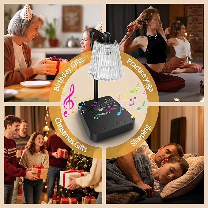- Musical Candle Warming Lamp with Dual-Action Relaxation: Sound & Scent Therapy, Fesmey candle lamp immerse yourself in complete tranquility. This innovative candle warmer gently melts your favorite candles to fill the room with soothing fragrance, while this candle warming lamp musical integrated high-fidelity speaker offers a library of 32 curated white noise sounds from rainfall to ocean waves to effectively mask distractions, quiet your mind, and promote deeper, more restful sleep.