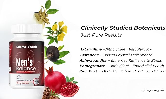 - Product Benefits : designed to enhance circulation strength and mental clarity with clinically backed botanicals, helps improve blood flow vitality and mood through natural nitric oxide and cortisol support, offers clean testosterone pathway support and emotional balance using plant-based extracts, promotes male focus endurance and stress resilience with vegan adaptogens and no stimulants, provides daily performance support for men without hormones caffeine or synthetic fillers, supports daily energy stamina and hormonal balance with clean plant-based ingredients designed to enhance circulation strength and mental clarity with clinically backed botanicals, helps improve blood flow vitality and mood through natural nitric oxide and cortisol… See more