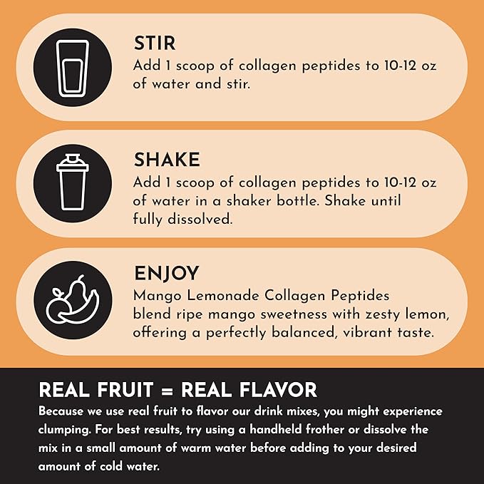 - REFRESHING MANGO LEMONADE FLAVOR – A light, fruity twist on daily collagen that makes supporting hair, skin, nails, and joints enjoyable every day.*