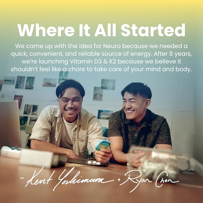 - BONE, IMMUNE & MOOD SUPPORT – Experience the refreshing burst of Vitamin D3+K2: Refresh your mind & body with a daily mint that does more than freshen your breath. Neuro Vita+Mint D3+K2 delivers essential support for mood, bone, and immune health - all in a zero sugar, aspartame-free, gluten-free formula made for everyday wellness.