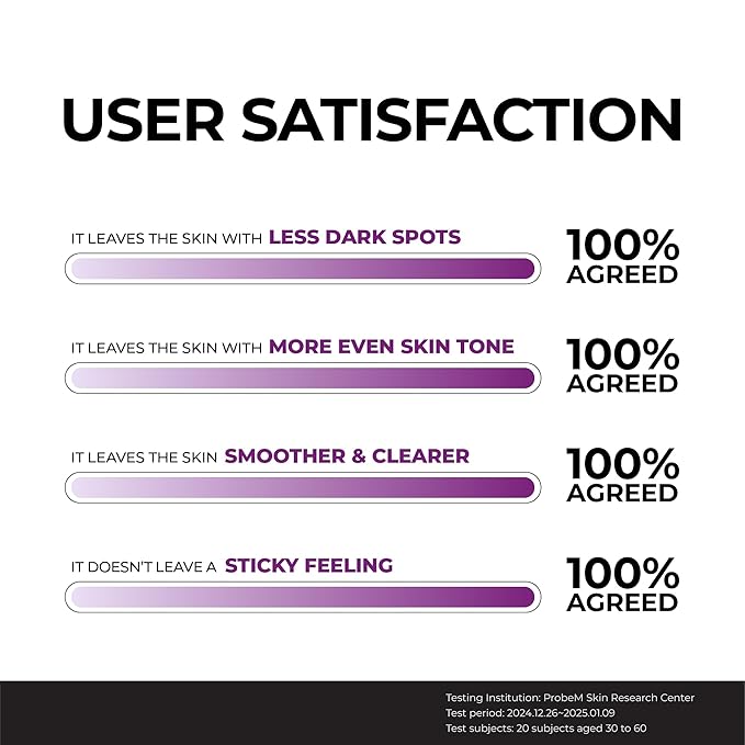 - CLINICALLY PROVEN RESULTS: Dermatologically tested formula delivers -27.7% reduction in hyperpigmentation and -20% in redness after 2 weeks. 100% user satisfaction with smoother, clearer skin and more even skin tone.