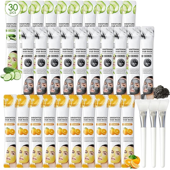 - 【Complete 3-In-1 Facial Mask Set】Treat your skin to a refreshing and rejuvenating experience with this 30-piece facial clay mask set. Featuring 3 unique mask types: Dead Sea Mud, Vitamin C Orange, and Cucumber, this set includes 10 masks of each type. Ideal for both men and women, it helps address various skin concerns, providing deep cleansing, hydration, and skin revitalization