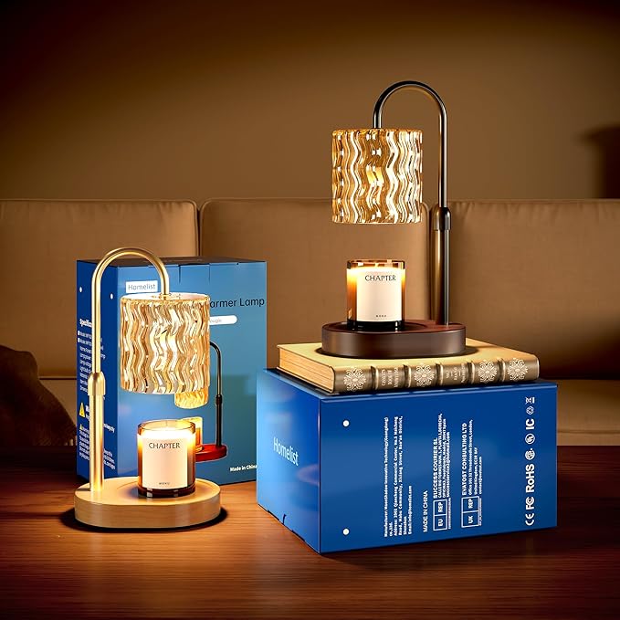 - GENTLE WAX MELTING POWER: Homelist candle warmer lamp adopts hidden warming bulb (Included 2 Bulbs) evenly melts candle wax from below, releasing rich, layered scents without smoke or soot. Adjustable height fits most standard 3-4" diameter candles