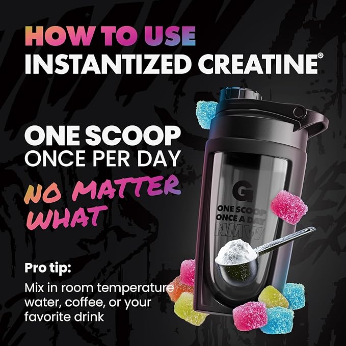 - HOW TO TAKE: Take one 5g serving of creatine monohydrate using the included pre-measured scoop, everyday, no matter what, for ideal results. For every 5g serving use 16 oz of room temperature water and gently stir or shake for 30-60 seconds until completely dissolved and clear. Also mixes great in any pre workout or post workout shake.