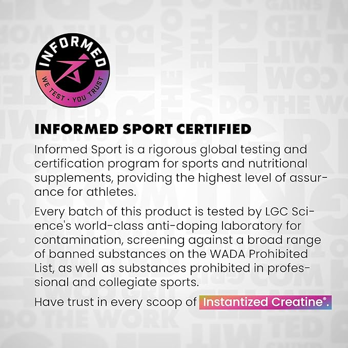 - ZERO BLOAT FORMULA: Experience a lean, energized physique with the help of our creatine powder. Unlike micronized creatine, Instantized Creatine dissolves completely in water. That gets the creatine right to where it needs to be, inside your muscles - not floating around in your gut making you feel bloated and crampy.