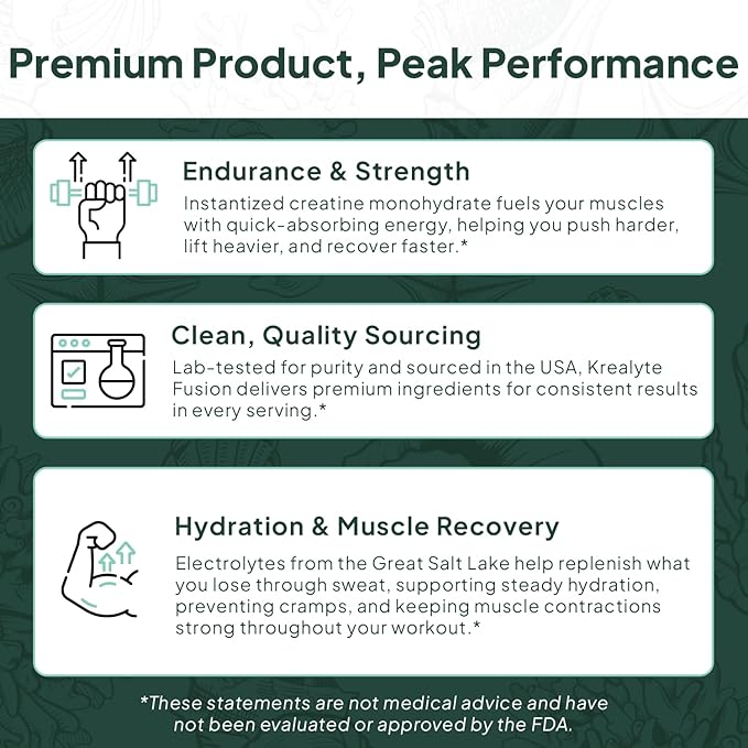 - Clean Formula, No Compromise: Organics Ocean tested leading instantized creatines and chose the purest creatine monohydrate for women and men, paired with USA-made electrolytes for optimal hydration. Krealyte Fusion is vegan, sugar-free, non-GMO, gluten-free, keto-friendly, and third-party tested for consistent quality.