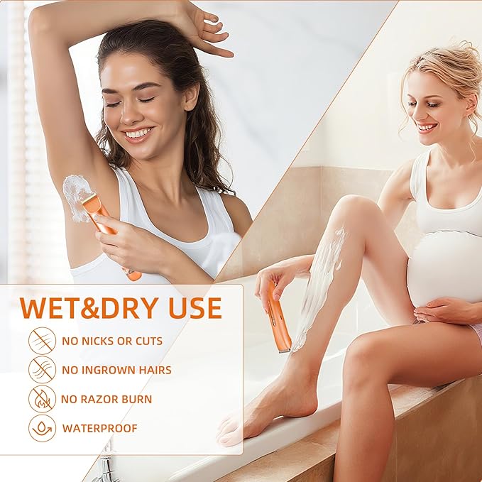 - 【Dual-Head Design】: The bikini trimmer for women features an innovative dual-head design that allows for precise hair removal on the face, body, and bikini area without the need for frequent head replacements. Perfect for achieving smooth skin effortlessly with one versatile device.