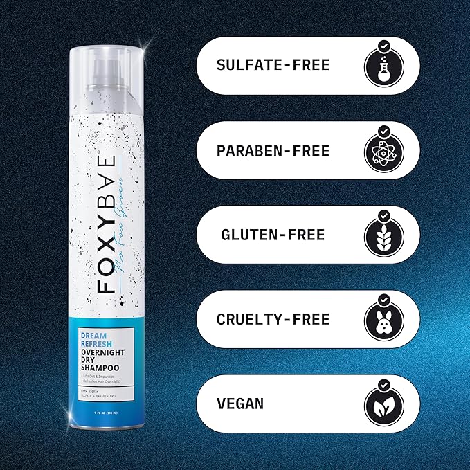 FoxyBae Dream Refresh Overnight Dry Shampoo – Biotin, Rice Starch & Charcoal Formula – Absorbs Oil, Sweat & Odor Overnight – For All Hair Types Including Color-Treated, Fine & Thick Hair – 7 fl oz
