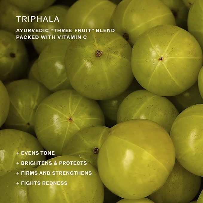 - GLOWING RADIANCE: Triphala, an Ayurvedic 3 fruit complex rich in Vitamin C helps tone and brighten the look of skin while shielding from environmental damage.