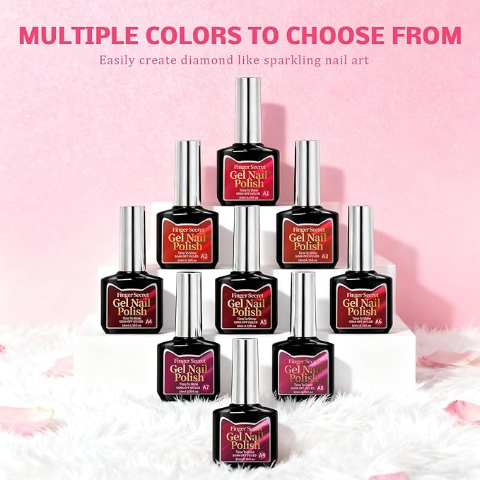 Gel Nail Polish Set, Cat Eye Gel Polish Kit, Scarlet Burgundy Carmine Dark Red Purple Holographic Reflective Magnetic Shimmer Gel, Manicure Salon DIY Gifts, Soak Off, UV/LED Cured (9 Colors A)