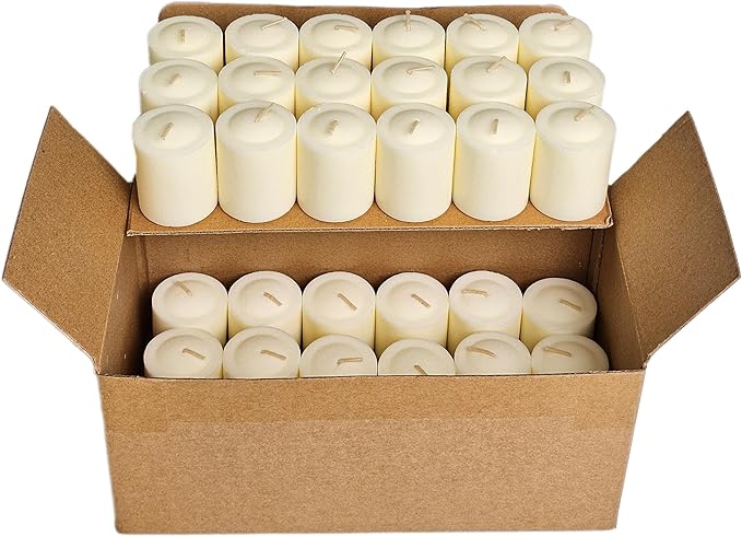 CW Studio Unscented Pressing Votive Candles – Long Hours Burn, Smokeless & Dripless – Premium Wax with Cotton Wick – Perfect for Weddings, Events, Home & Romantic Décor (36, Ivory, 1.77 x 1.45 inches)