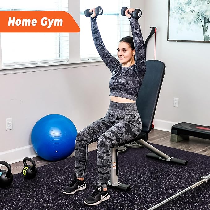 - 【Upgraded Dual-Layer Design.】A high-density EVA foam base combined with a sturdy EPDM rubber top. This construction can bear heavy exercise equipment, ensuring it won’t tear easily due to weight or vigorous movements, guaranteeing long-lasting resistance to wear and tear.