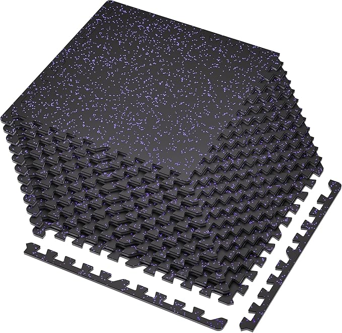 SUPERJARE 0.4'' Thick 12 Pcs 48 Sq Ft Rubber Top Exercise Equipment Mats, High Density EVA Foam Mats with Rubber Top, Interlocking Gym Flooring for Home Gym, Protective Workout Mat, Black/Purple