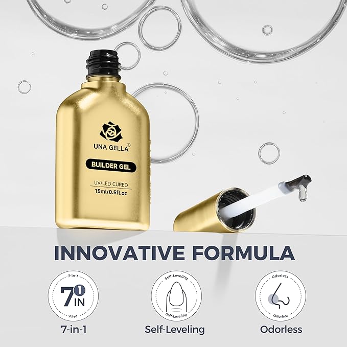 - 7-IN-1 BUILDER GEL: Una gella do care what you want for builder gel. Except for apex building or nail extensions, use it for everyday nail care like filling ridges and strengthening natural nails or tips. It’s your go-to for a fast, simple, and low-odor at-home manicure. no more long, smelly sessions with traditional acrylics!