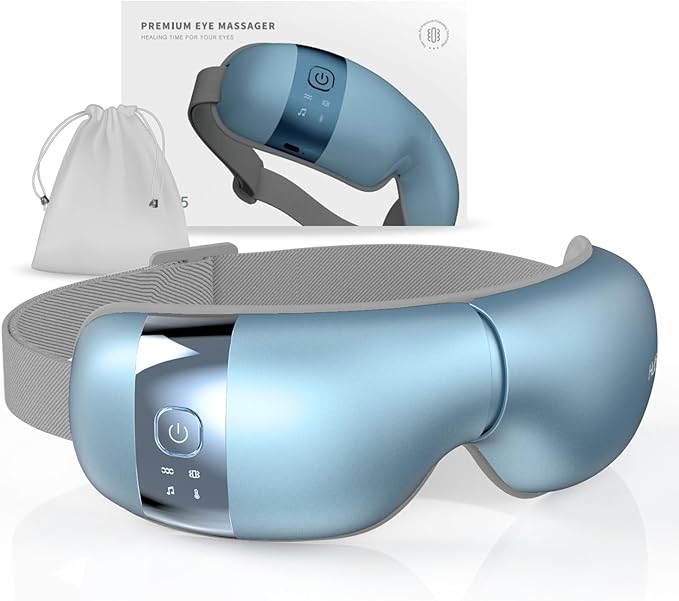 HubiCare Eye Massager with Heat, Vibration, and Music Helps Relieve Strain, Dark Circles, Dryness, and for Migraine Relief Relaxation and Better Sleep Gifts for Women/Men (Ice Blue)