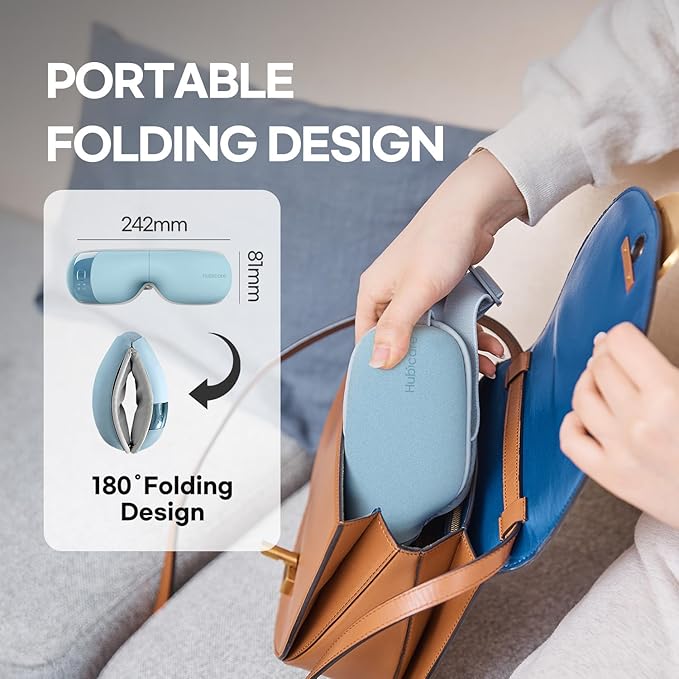 - 【Reduce Eye Strain & Improve Sleeping】HubiCare eye massager adopts oscillating pressure and rhythmic percussion massaging, it can make the skin around the eyes more shiny and elastic. HubiCare heated eye mask with comfortable and stable music can play a good sedative effect. Wear it for 15 minutes before going to bed every night, you will be totally relaxed and enjoy a better sweet dream. Our eye care machine also can effectively help you be refreshed after long-day work or study.