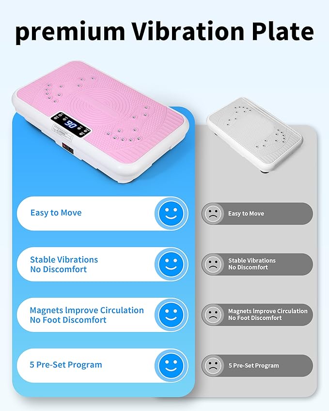 - Convenience & Ease of Use: Intelligent remote control, one click start. You can use vibration plate for lymphatic drainage exercise and slim down while watching TV.