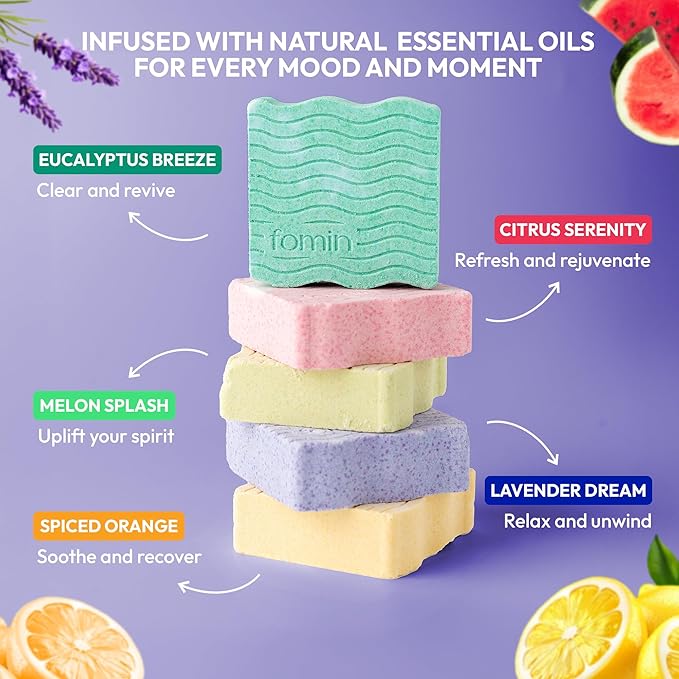 FOMIN Aromatherapy Shower Steamers - 12 Count - Lavender Dream Bath Bombs with Essential Oils for Stress Relief & Relaxation - Self Care, Spa Gifts for Women and Men - Shower Aroma for Body Wellness