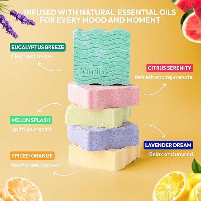 FOMIN Aromatherapy Shower Steamers - 12 Count - Spiced Orange Bath Bombs with Essential Oils for Stress Relief & Relaxation - Self Care, Spa Gifts for Women and Men - Shower Aroma for Body Wellness