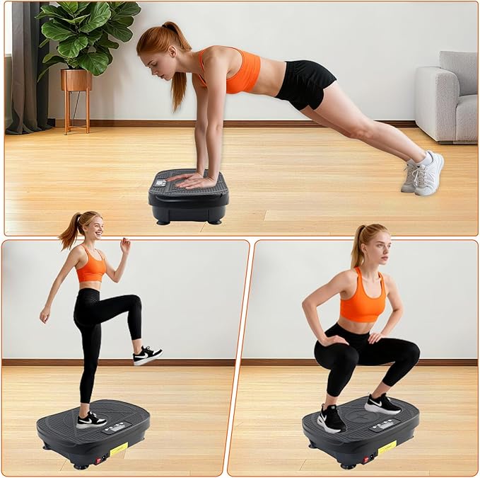- 【EASY TO USE & STORE】Operate the Homesy vibration plate in two ways: with the included remote control or via the touch screen, the display allows you to see the time and speed for a clear view of your workout; Anti-slip coated design, impact-resistant ABS housing ensures the longevity and protection of the motor. Compact size, can be used anywhere, space saving, easy to carry and store.