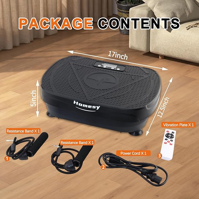 - 【EXCELLENT QUALITY & AFTER-SALES SERVICE】Our vibrating plate is manufactured by the top professional factory, each product has been rigorously tested. You can enjoy our vibration plate and resistance bands absolutely risk-free. Homesy's mission is to develop premium & safe home exercise equipment to help you lead a healthier & better lifestyle with 100% customer satisfaction. If you got any problems, just contact the seller first in Email, we will give you a satisfactory solution.