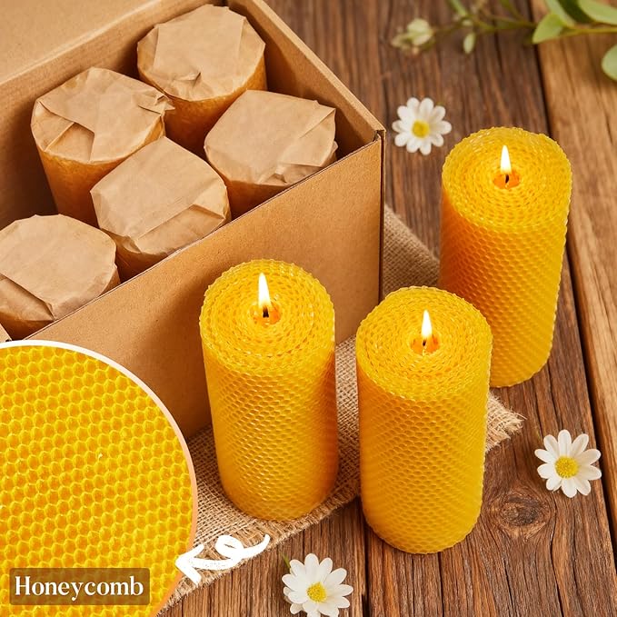 - 100% Pure Natural Beeswax:Made solely from premium, all-natural beeswax. Hand-rolled without any paraffin,or additives for a truly clean, non-toxic burn. The pure cotton wick is lead-free, ensuring a healthier environment for your home