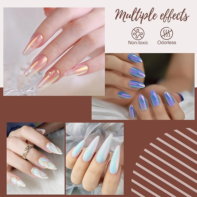 - 【PACKAGE CONTENTS】:1 PCS red to gold aurora chrome nail pearl pigment powders. It needs to be used with gel nail polish and no wipe top coat. They can make many different design for your gel nail polish. It gives different color base a pearly shine for your nails
