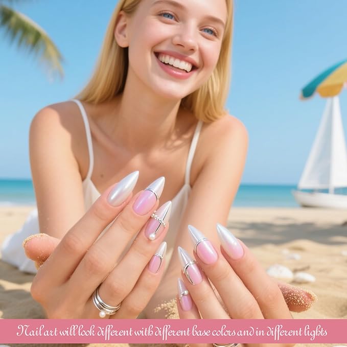 - 【PACKAGE CONTENTS】:1 PCS silver moonlight chrome nail pearl pigment powders. It needs to be used with gel nail polish and no wipe top coat. They can make many different design for your gel nail polish. It gives different color base a pearly shine for your nails