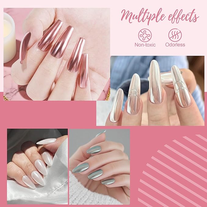 - 【The Scope Of Application】:All chrome powders should only be applied to glossy No wipe top coat to embellish Nail-Polishes color. Otherwise it is unusable, it can't be applied directly to the nail, and it can't be applied directly to the skin. Artdone chrome powder can be applied on UV gel nails, acrylic nails or false nail tips. You can use them very easily