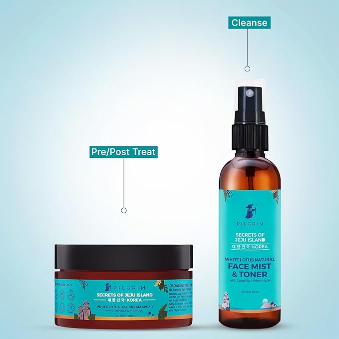 Pilgrim Korean White Lotus Day Cream SPF 50 (PA+++) & Face Mist & Toner With Camelia & Yugdugu | Skin Brightening |Reduces Fine Lines & Wrinkles| Deep Nourishment|Fights Pigmentation