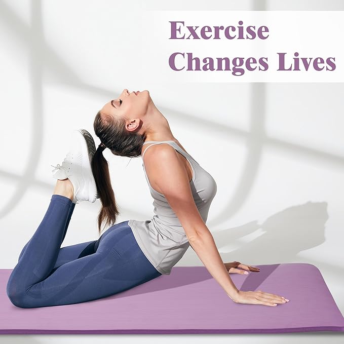 Yoga Mat 1-Inch Extra Thick High-Density Exercise Mat with Non-Slip Surface & Carry Strap for Men & Women Tear-Resistant Pilates Workout Mat for Home Gym, Floor Fitness, Taro Purple