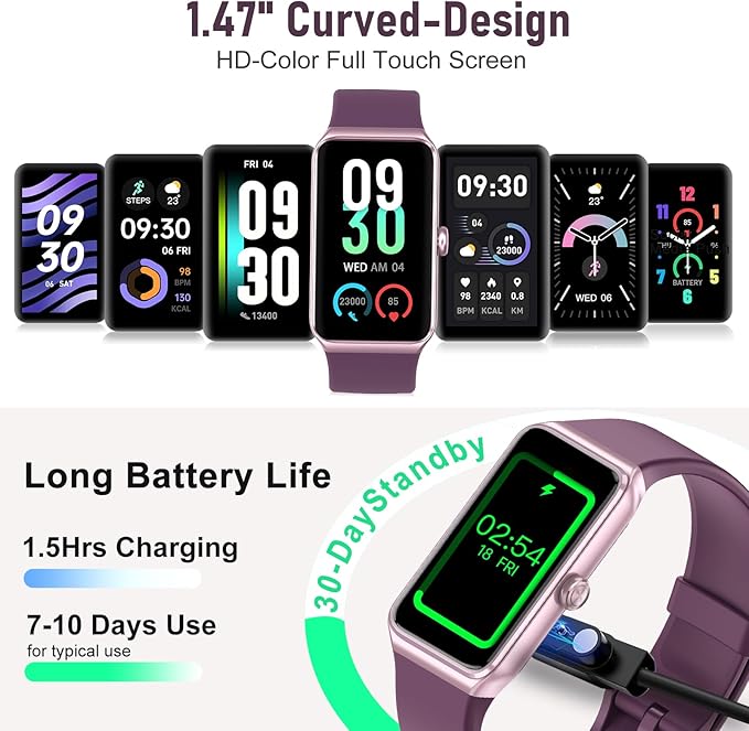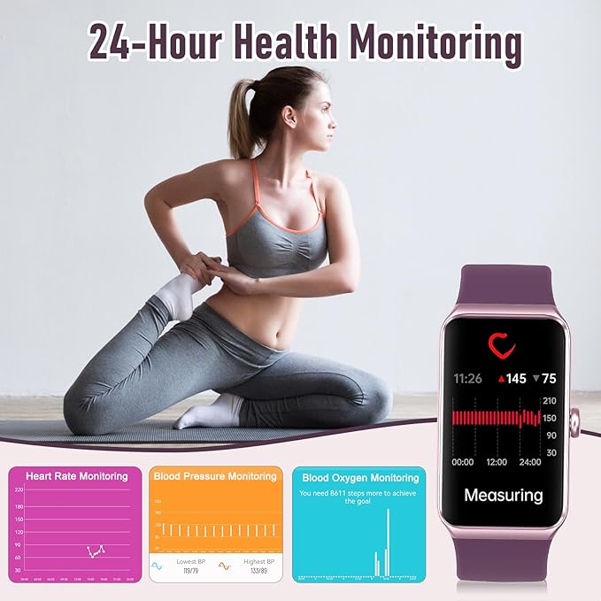- 24/7 Heart Rate Monitor :This blood pressure watch supports real-time dynamic heart rate, blood oxygen, blood pressure ,Sleep Tracking,temperature monitoring so you can know more about your physical condition