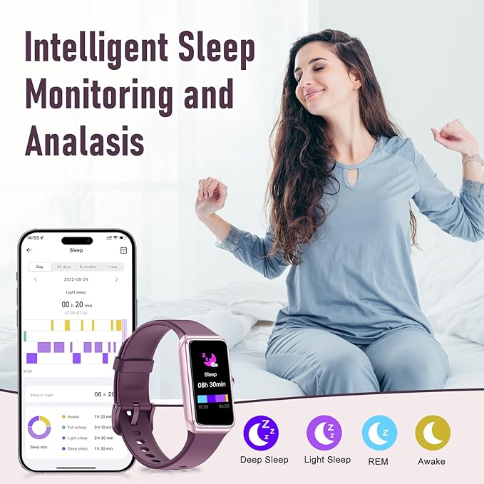 - Sleep Tracking & Sleep Score:The Smart watches monitors your sleep and analyzes your sleep quality through Deep Sleep, Light Sleep, Awake stage, gives you a nightly sleep score in the app, leading a healthy lifestyle
