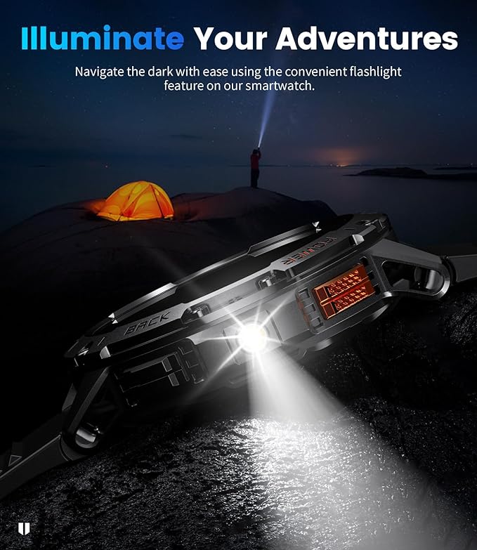 - Your Night Just Got Brighter, Right on Your Wrist: Never fumble in the dark again. EF5 Smart Watch with Flashlight that’s always ready when you need it, whether you’re unlocking your door at night, checking on the kids without turning on the lights, or finding your way on a late run. Never drain your phone battery again during night emergencies or late runs Simple, smart, and always there. One less thing to carry. One more reason to wear it.